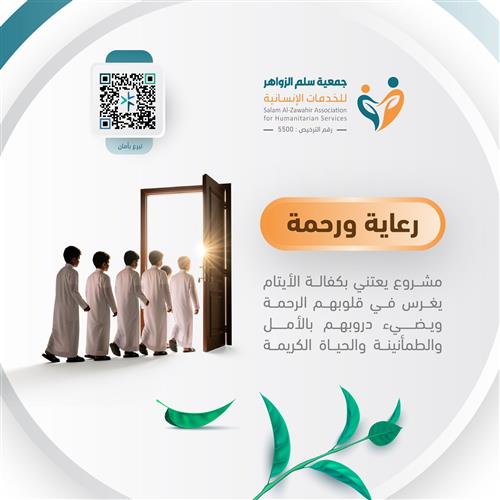 حملة كفالة يتيمين - سنة كاملة - ضمن مشروع رعاية ورحمة للعناية بكفالة الأيتام ورعايتهم، وغرس الرحمة في قلوبهم وإضاءة دروبهم بالأمل والطمأنينة والحياة الكريمة ، قال رسول الله ﷺَ: "أنا وكافل اليتيم كهاتين في الجنة" وأشار بأصبعيه السبابة والوسطى .